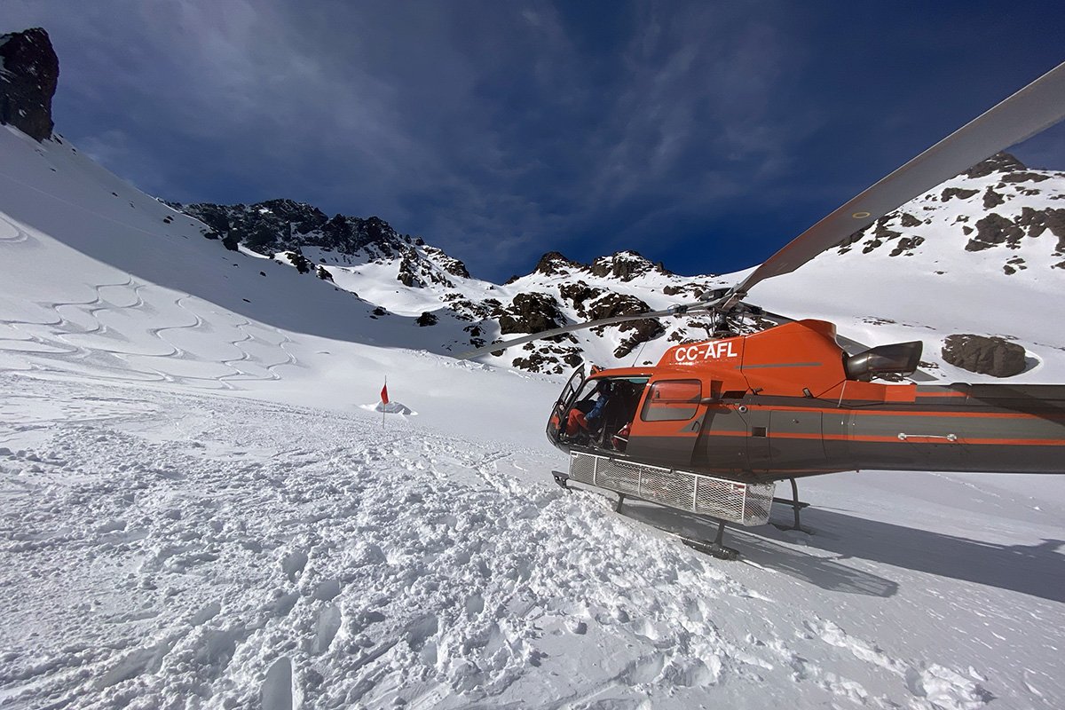 We provide helicopter rentals for heli-skiing and manage snowcat access to offer exclusive guided backcountry experiences at Ski Arpa, located in Central Andes.